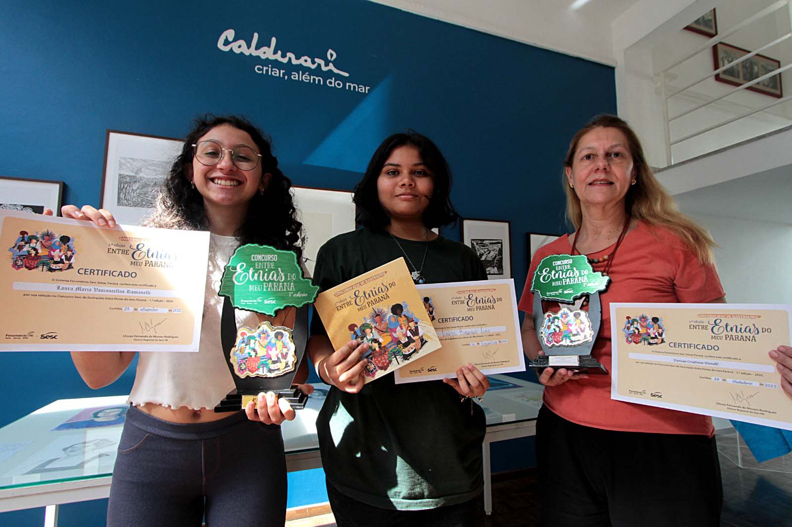 Duas alunas e uma professora do Centro Juvenil de Artes Plásticas (CJAP) foram selecionadas no Concurso de Ilustração do Sesc. Foram mais de 4.500 trabalhos inscritos com o tema “Etnias do Meu Paraná”, divididos em quatro categorias, mas apenas 90 foram escolhidos para compor a coletânea. Uma das alunas, Laura Maria Romanelli, também ficou 4º na categoria Público em Geral.