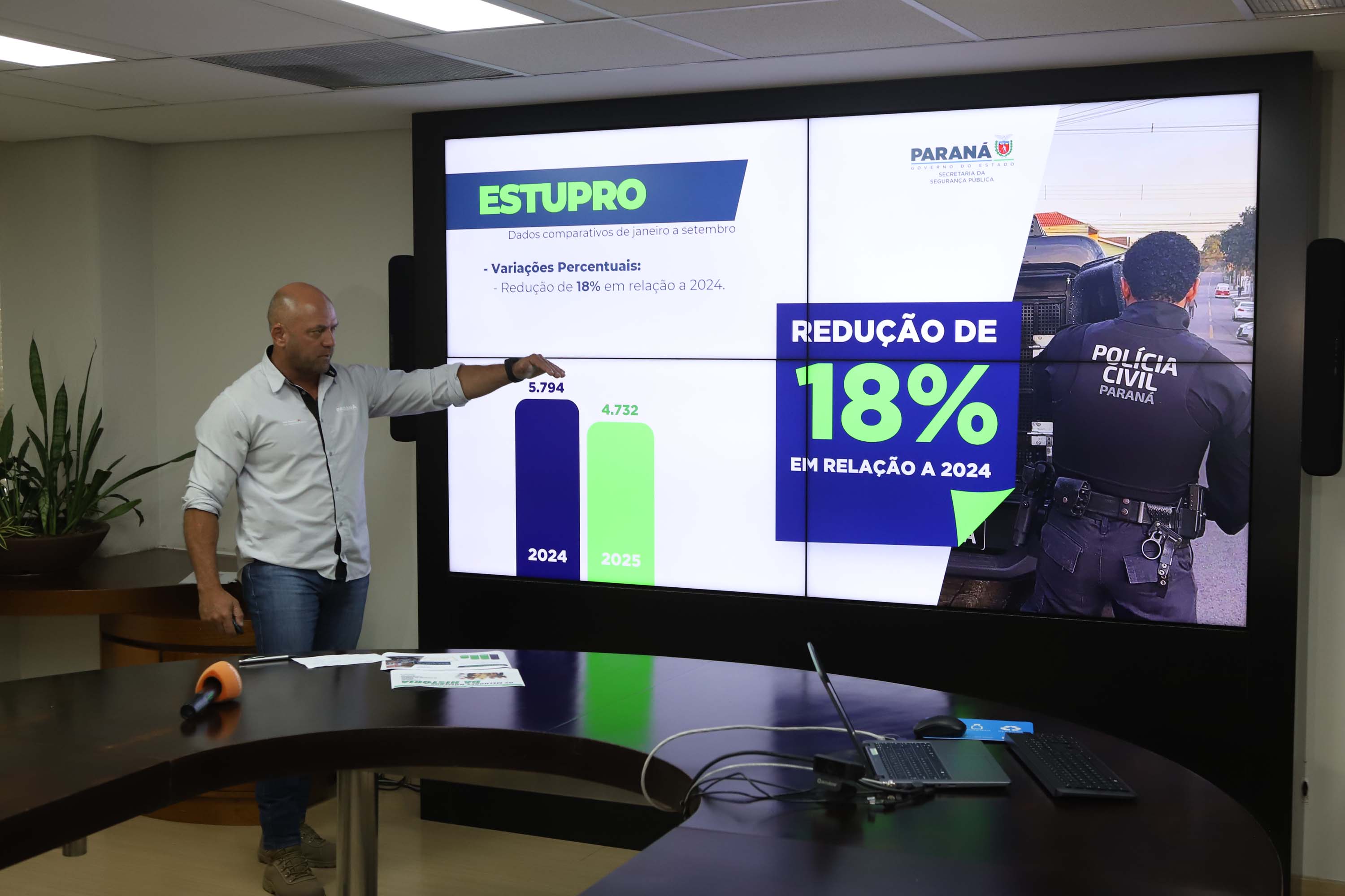 Os dados fazem parte do balanço de Segurança Pública no Paraná, apresentado nesta quarta-feira (29). O relatório também mostra redução de 29% nos homicídios dolosos (quando há intenção de matar), mantendo a tendência de queda verificada em 2024, ano que registrou os menores índices da série histórica iniciada em 2007 para homicídios, roubos e furtos.
