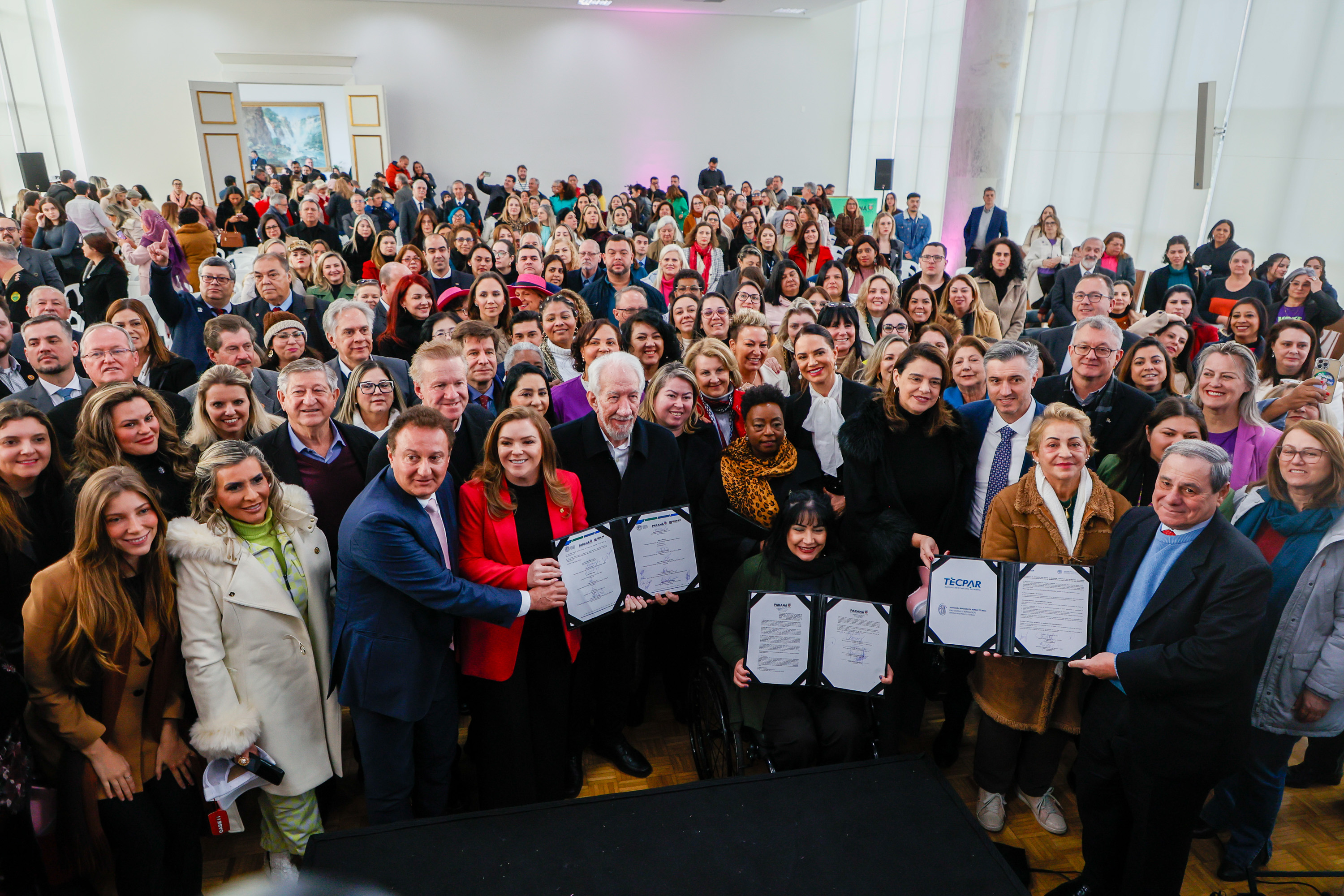 PRESENÇAS – Estiveram presentes na cerimônia de lançamento do selo os secretários de Justiça e Cidadania, Santin Roveda; das Cidades, Camila Mileke Scucato; da Segurança Pública, Hudson Leôncio Teixeira; e do Turismo, Márcio Nunes; a controladora-Geral do Estado, Letícia Ferreira da Silva; o defensor-público-geral, Matheus Munhoz; o diretor-presidente do Tecpar, Celso Kloss; o diretor-presidente do Detran-PR, Adriano Furtado; o diretor-presidente do Ipem-PR, César Mello; as deputadas estaduais Cloara Pinheiro, Flavia Francischini, Mara Lima e Márcia Huçulak; os deputados estaduais Nelson Justus, Batatinha, Luis Corti e Artagão Júnior; o presidente da ABNT, Mario William Esper; o presidente do CREA-PR, Clodomir Luiz Ascari; o presidente do CONFEA, Vinicius Marchese; a presidente da OAB-PR, Marilena Winter; e demais autoridades.