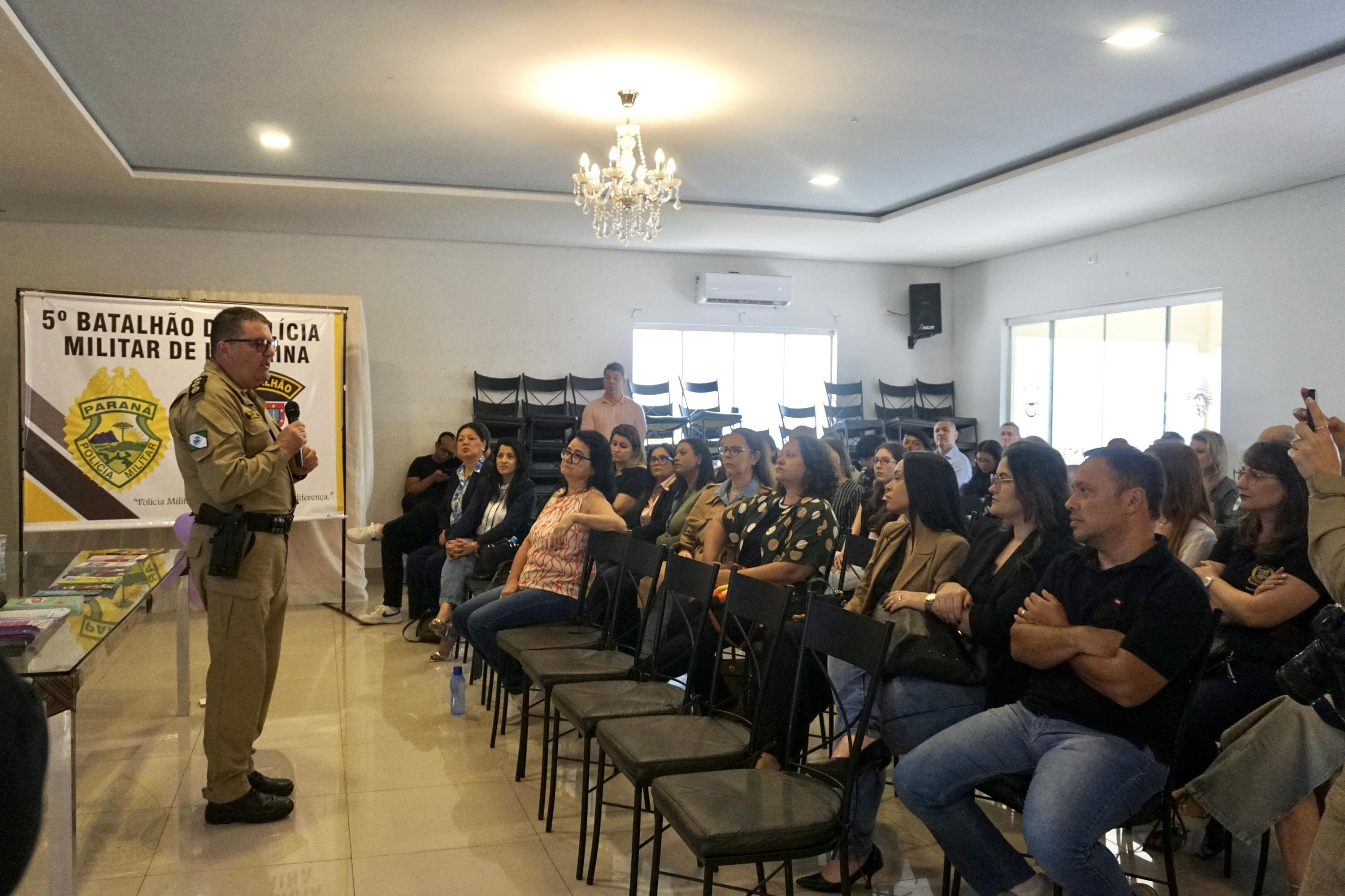 Já no início da tarde, foram realizadas palestras sobre temas como “Mulher Segura” e “Mulher Segura — Adolescentes”, promovida para alunos do 2º Colégio da Polícia Militar do Paraná (CPM), onde foi abordado desde a prevenção da violência até a conscientização de jovens e adultos, incluindo o papel do engajamento masculino.