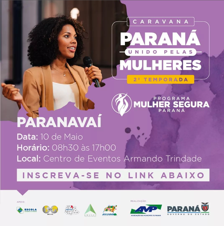 O município de Paranavaí será o próximo destino da “Caravana Paraná Unido Pelas Mulheres” no dia 10/05, a partir das 8h30, no Centro de Eventos Armando Trindade (Av. Deputado Heitor Alencar Furtado, 3260 – Jardim Novo Horizonte). Inscreva-se para o encontro aqui: https://www.ead.pr.gov.br/login/index.php